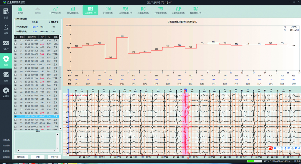 心率震荡分析、QT间期分析、心电向量图分析、心率减速分析、T波电交替分析、心室晚电位分析、睡眠窒息分析