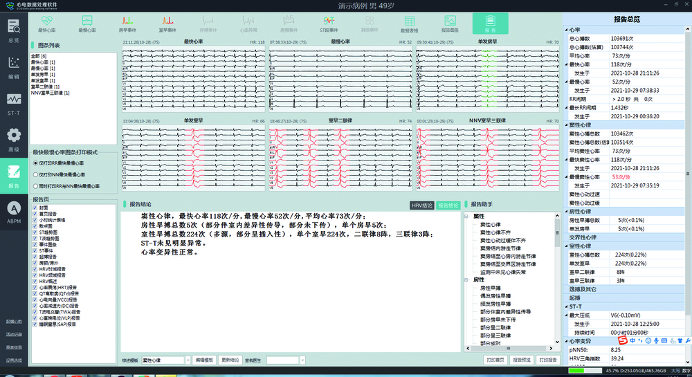 心电报告编辑界面简洁清晰、自动结论快捷方便