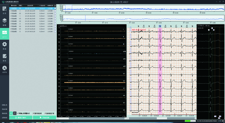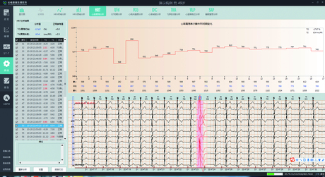 血压、心电联动分析。血压数据列表、脉搏波与心电图片段同屏互动